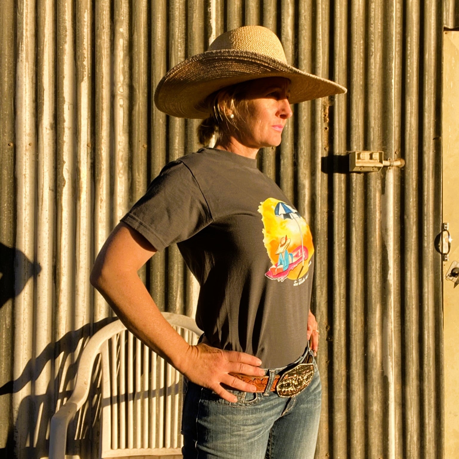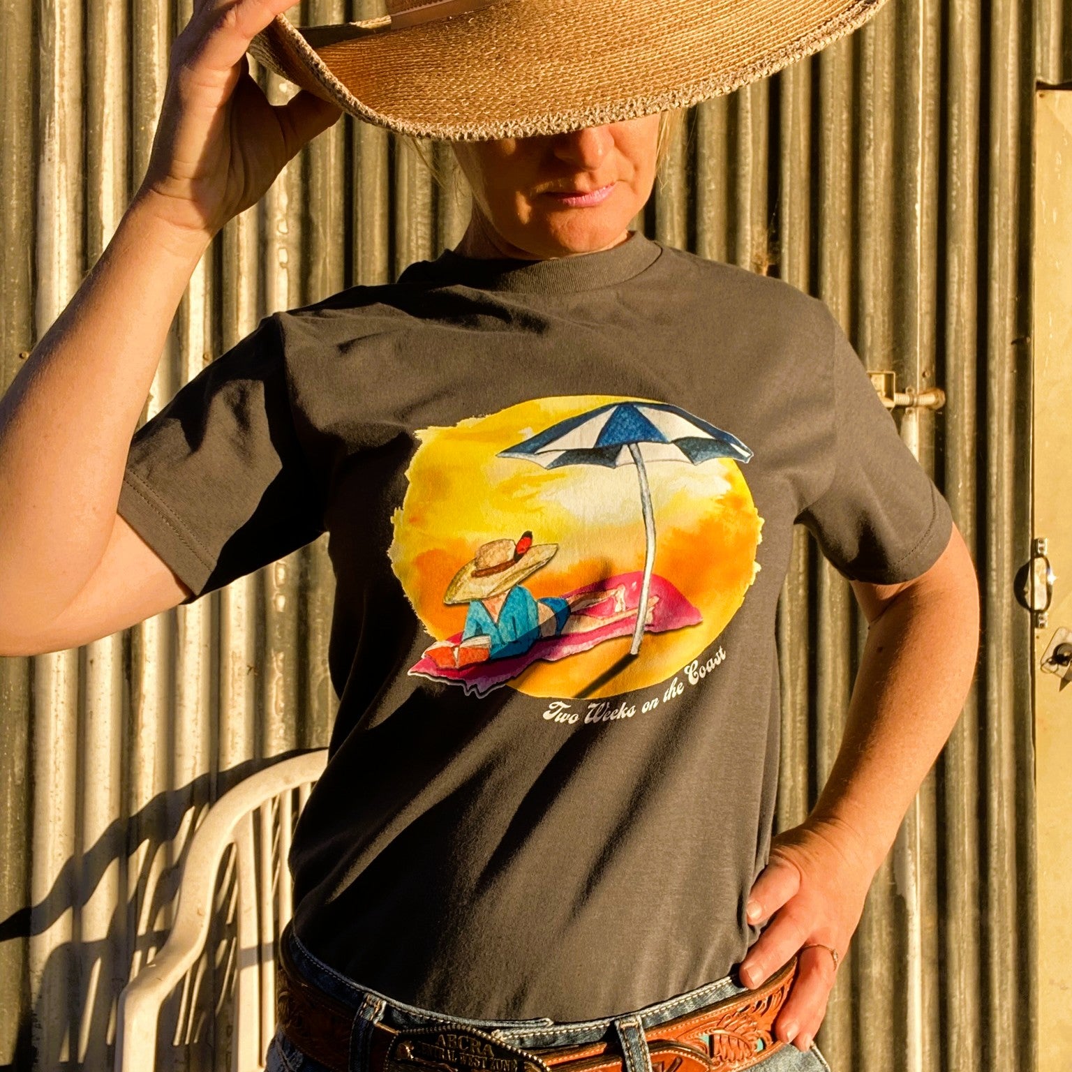 Charcoal heavy-weight t-shirt with a wide ribbed round neck, featuring artwork by Miss Vet. A classic, relaxed cut that is 100% cotton in unisex sizing. Designed and printed in Australia.